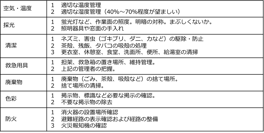 非工業的な業種でも、職場環境が悪いと疾病など身体に影響を及ぼす可能性があります。働く人々が病気にならないために、『労働衛生の3管理」すなわち、①作業環境管理、②作業管理、③健康管理が重要な管理活動となります。