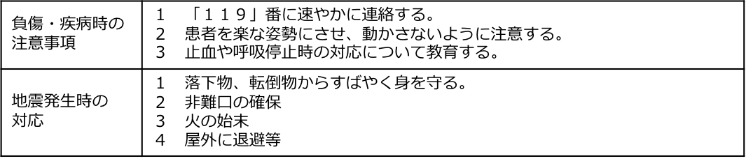 どんな業種 でも、疾病や負傷者が発生したり、地震・火災等の災害に遭う可能性は多いにあります。非常事態でも冷静に対処できるよう、応急処置や退避について把握しておきましょう。