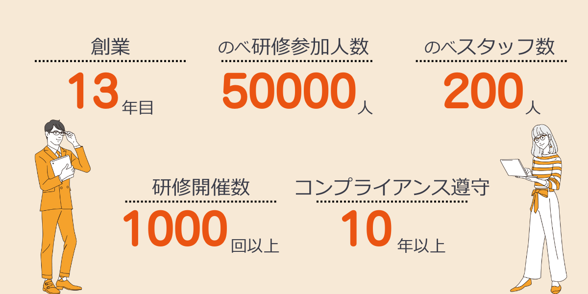 各種研修をのべ5万人以上に実施してきた実績があります。