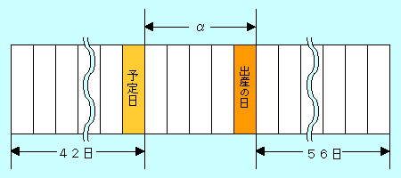 予定日よりおくれて出産した場合は支給期間が、出産予定日以前42日(多胎妊娠の場合は98日)から出産日後56日の範囲内となっていますので、実際に出産した日までの期間も支給されることになります。たとえば、実際の出産が予定より4日おくれたという場合は、その4日分についても出産手当金が支給されます。