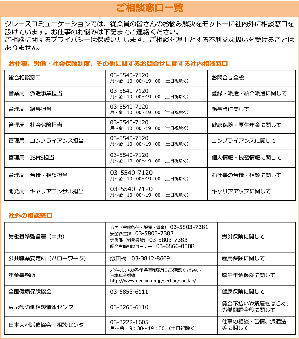 派遣社員等の相談や苦情を受け付ける相談窓口